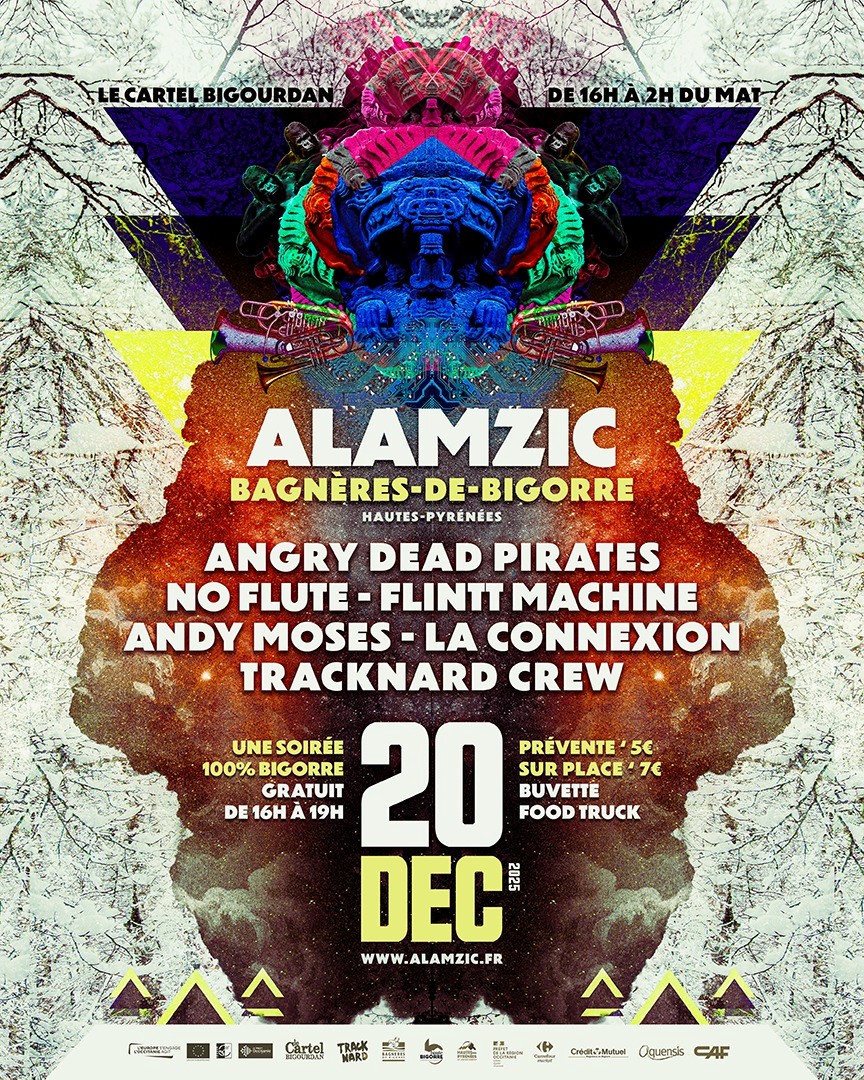 20 déc 2025 Musique Partager Concert World / Funk / électro / Punk de 16h à 02h A l'Alamzic Concert de groupes locaux organisé pas Le Cartel Bigourdan.